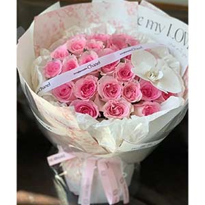 33枝粉玫瑰加蝴蝶兰